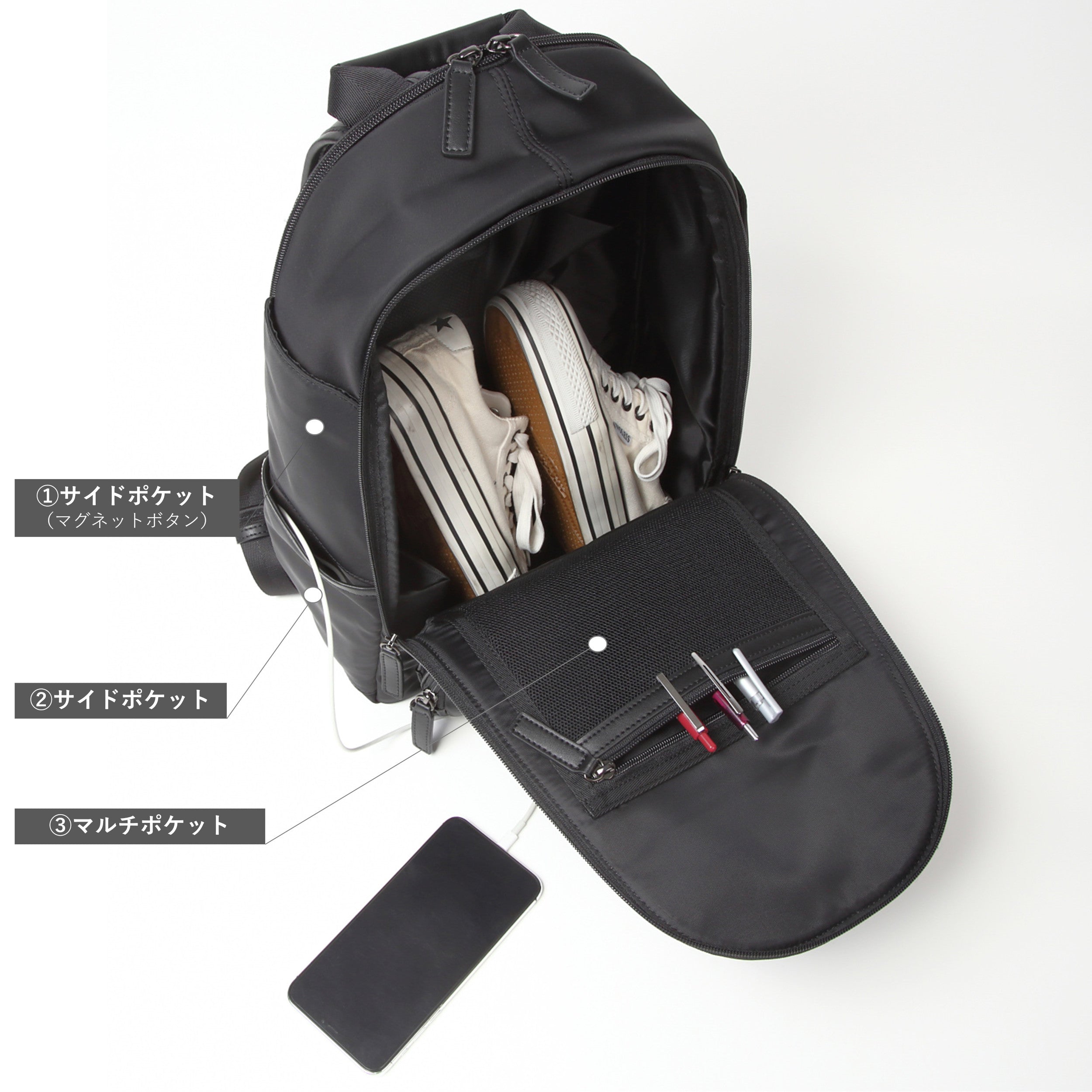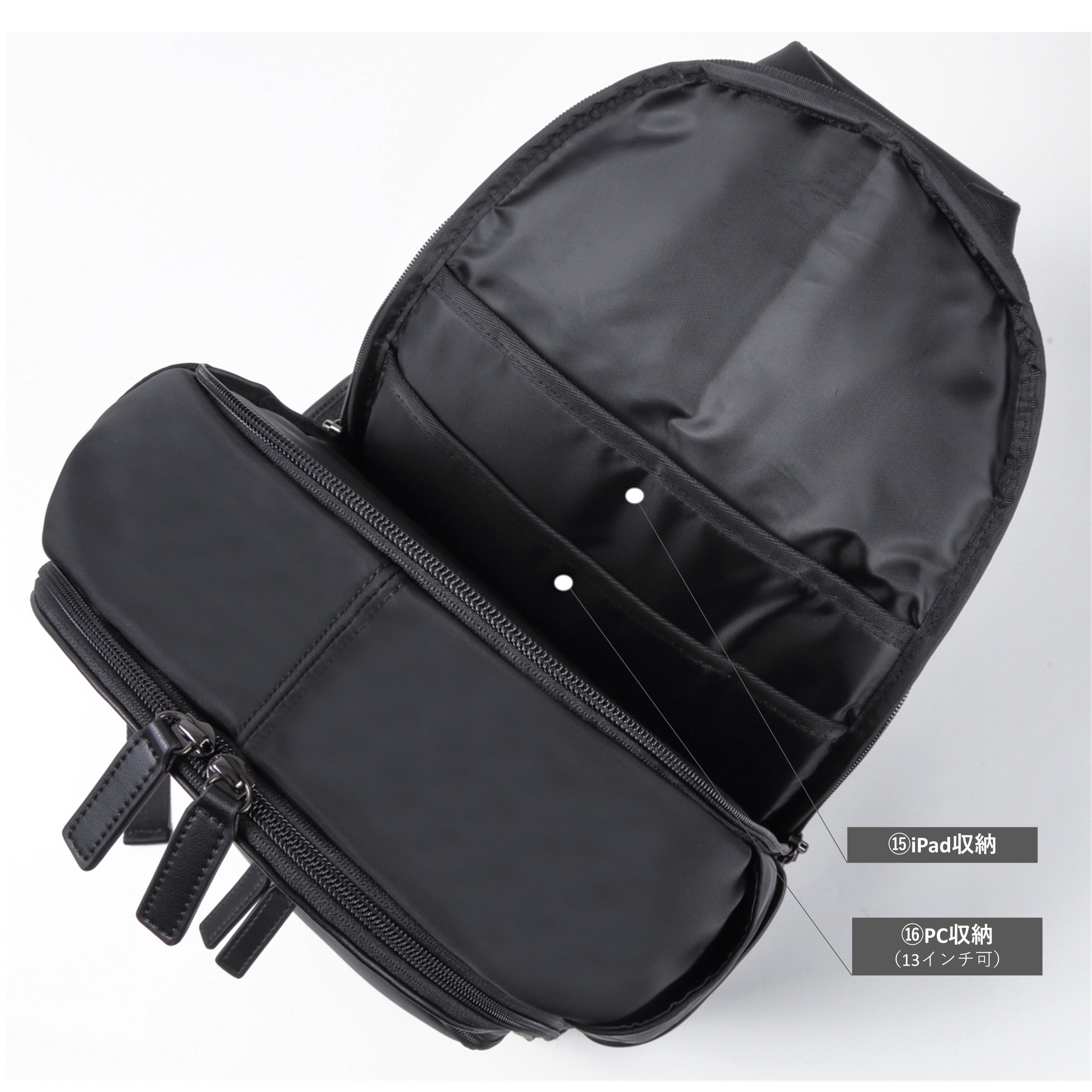 TAN《タン》ブラックシティリュック | A4 対応 13.3インチPC対応 15L 縦42cm 撥水レザー ナイロン 二重構造 ユニセックス