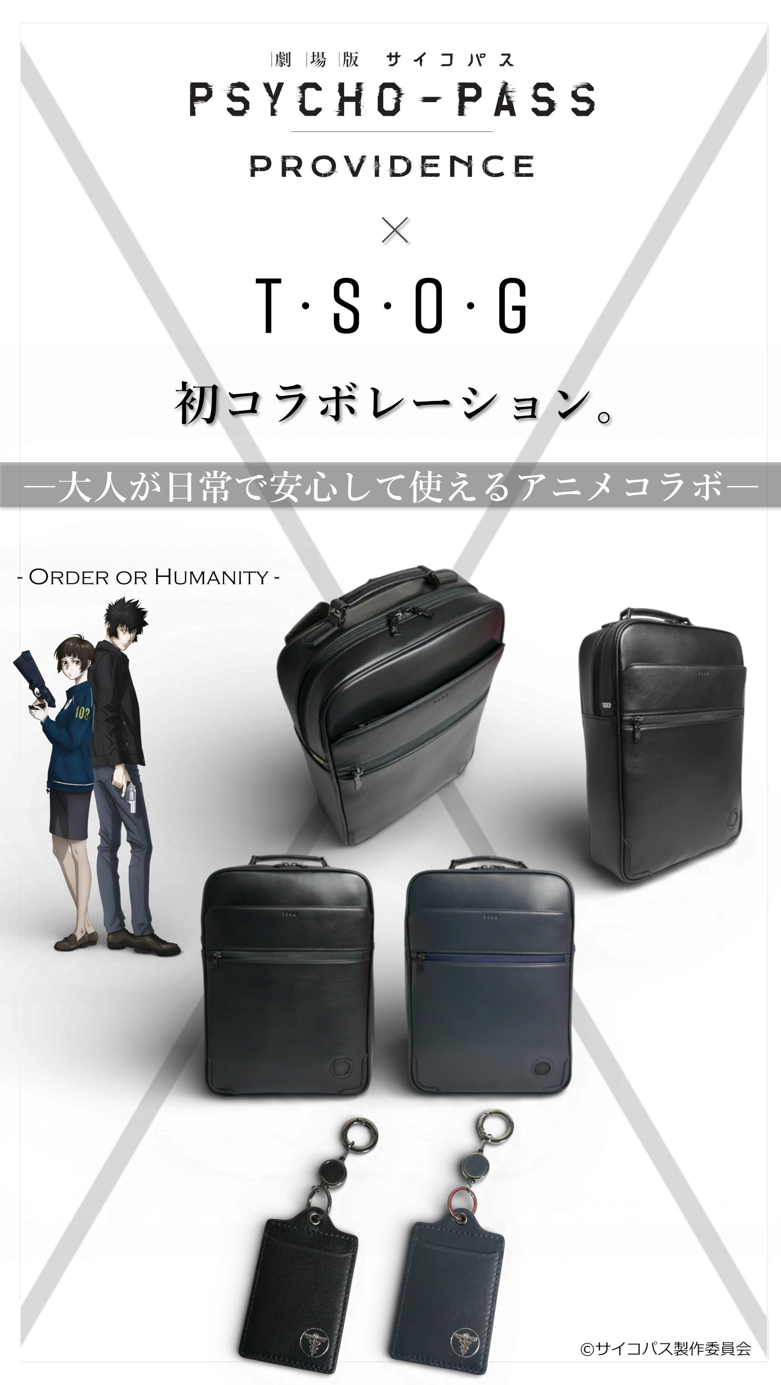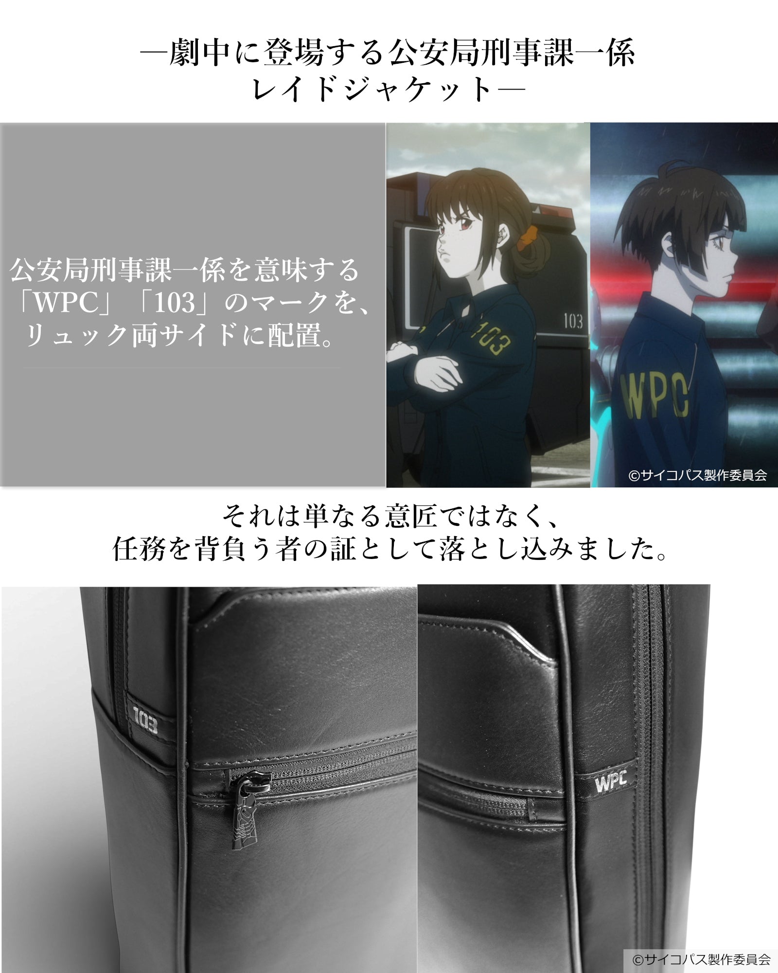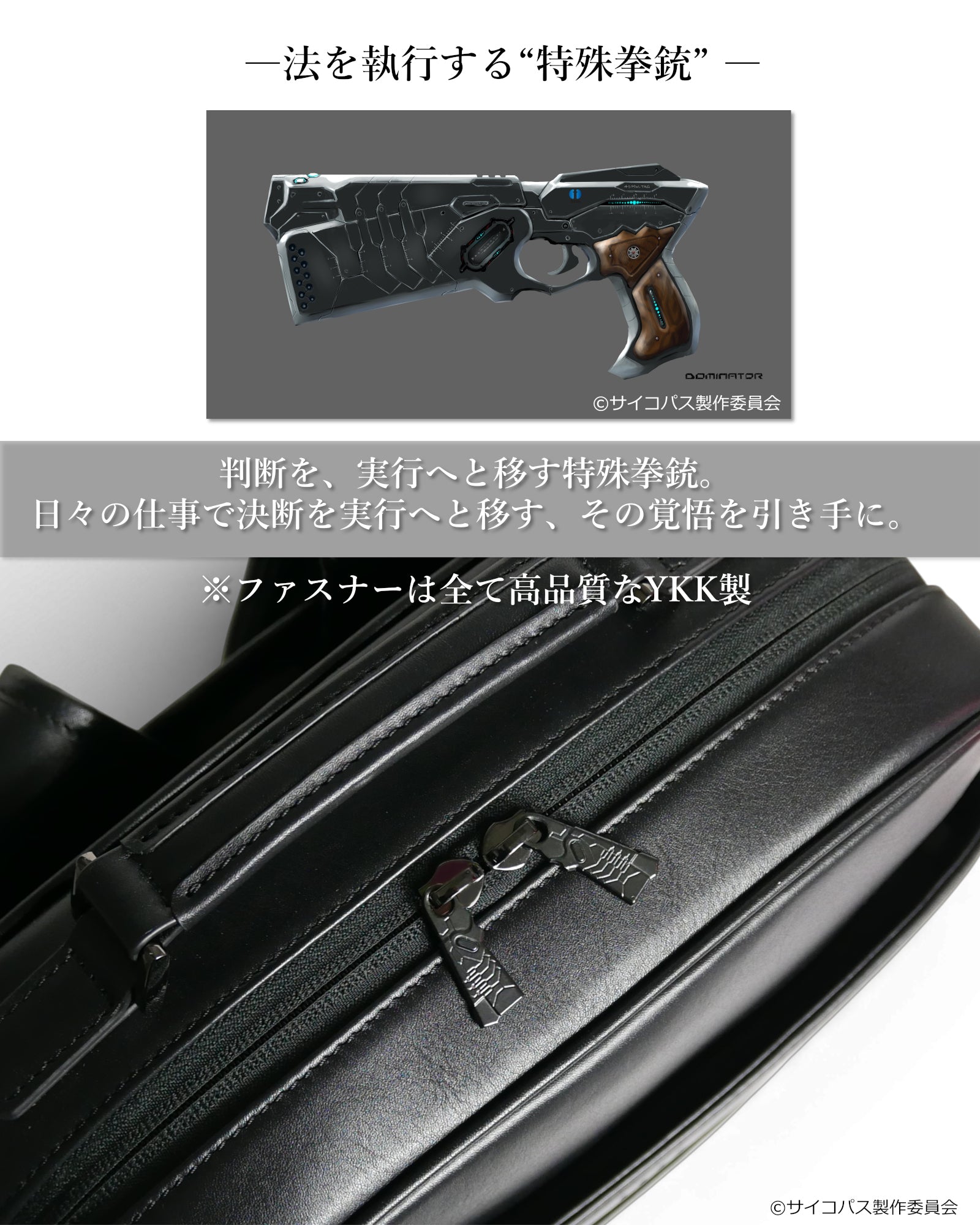 作品の世界観や公安局刑事課のイメージをもとに、日常でも使いやすいデザインに落とし込みながら、作品の空気感を感じられるディテールを取り入れています。