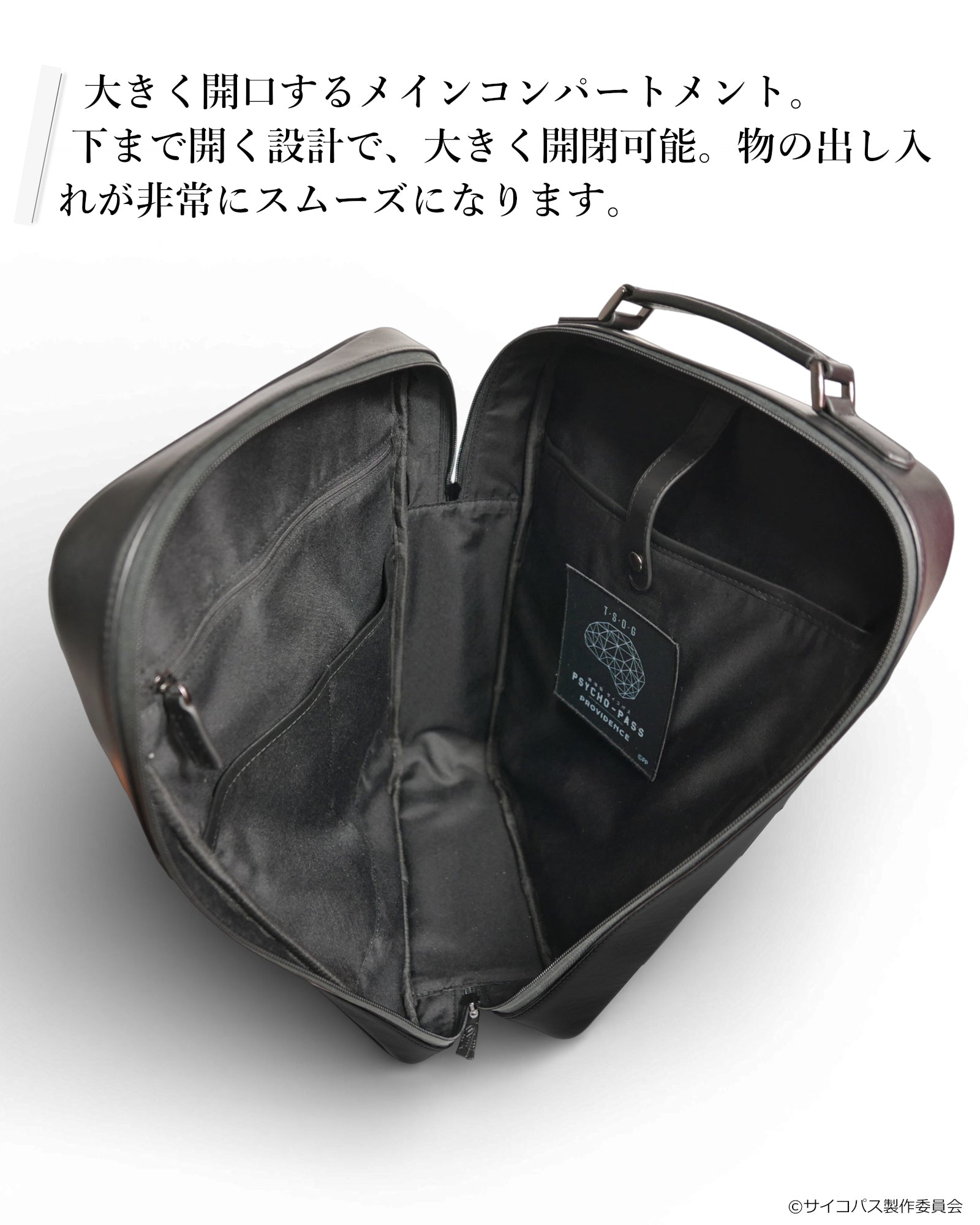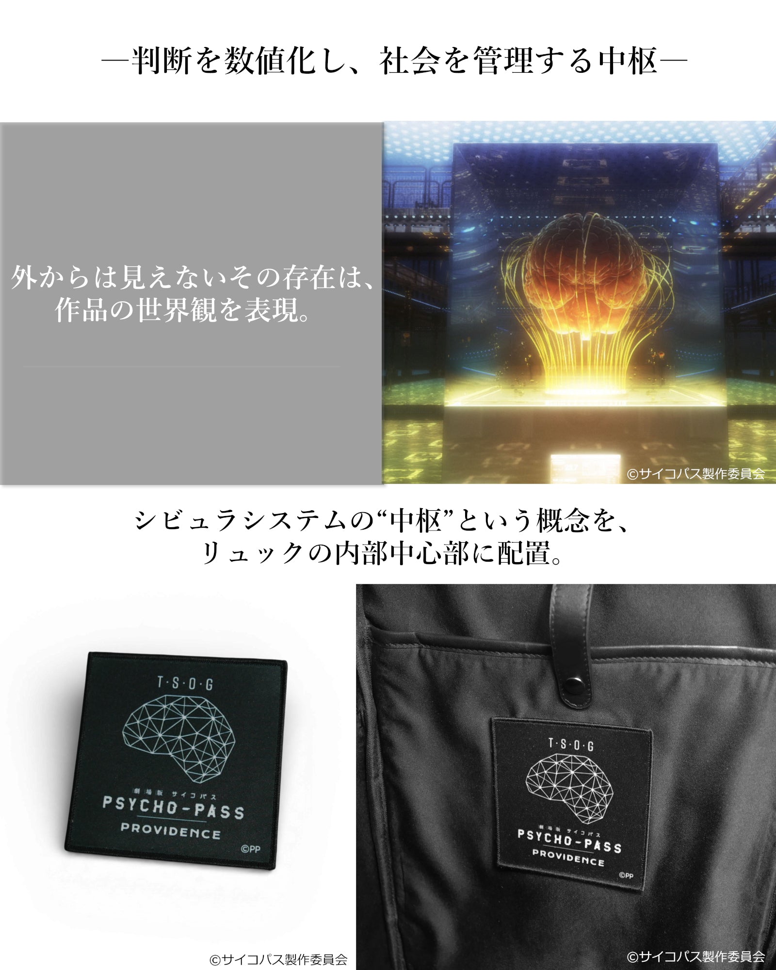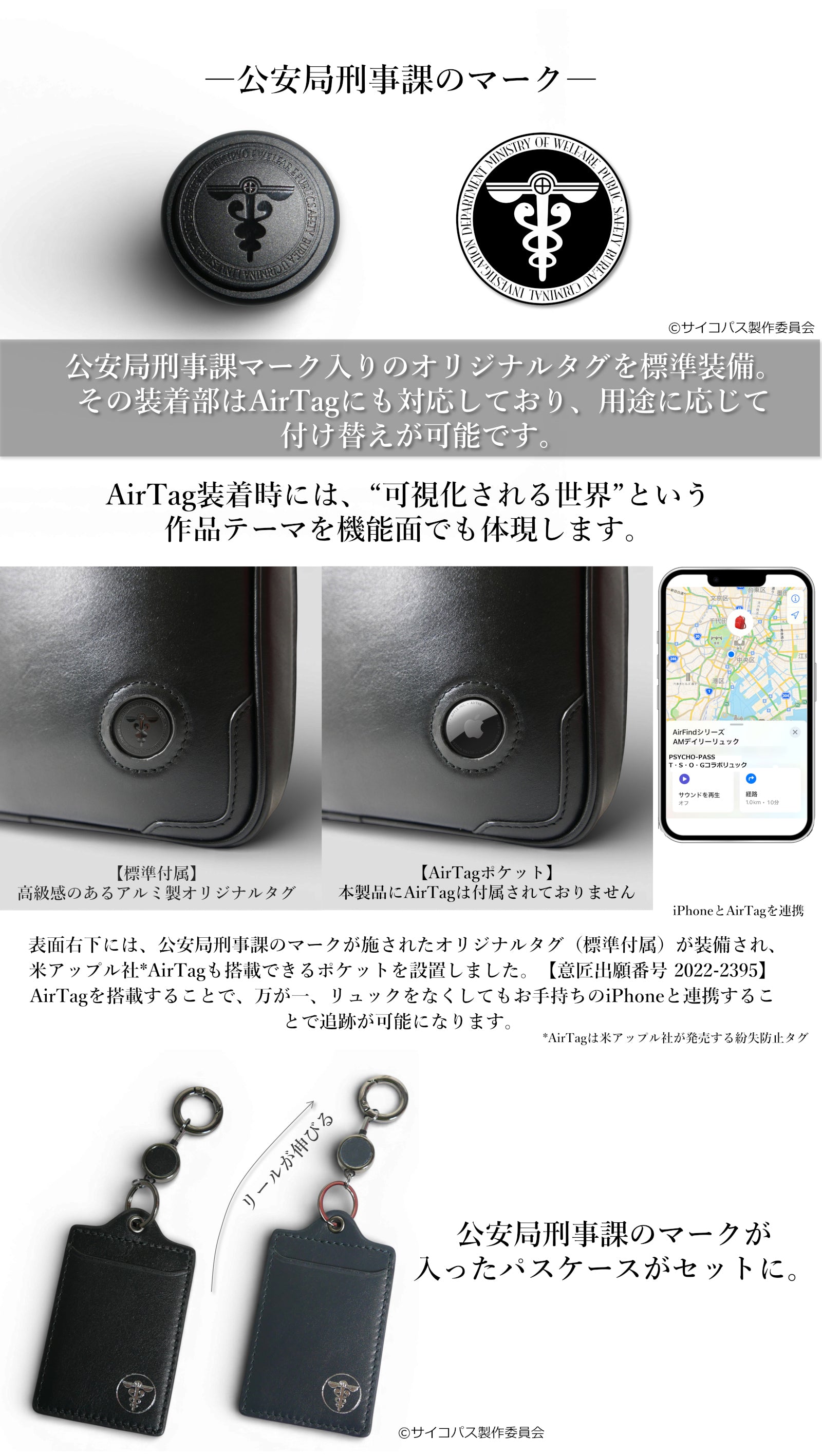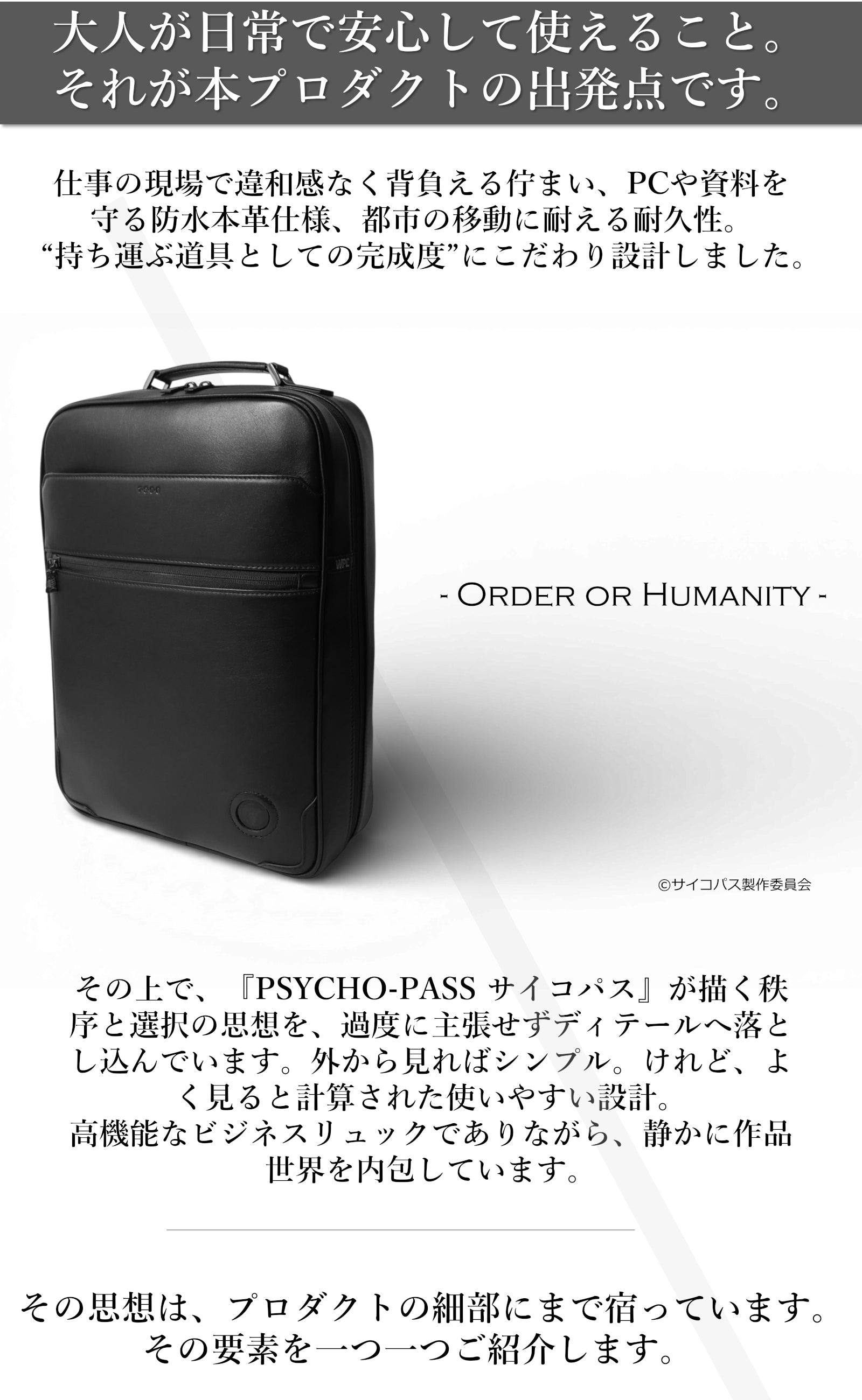 作品の世界観や公安局刑事課のイメージをもとに、日常でも使いやすいデザインに落とし込みながら、作品の空気感を感じられるディテールを取り入れています。