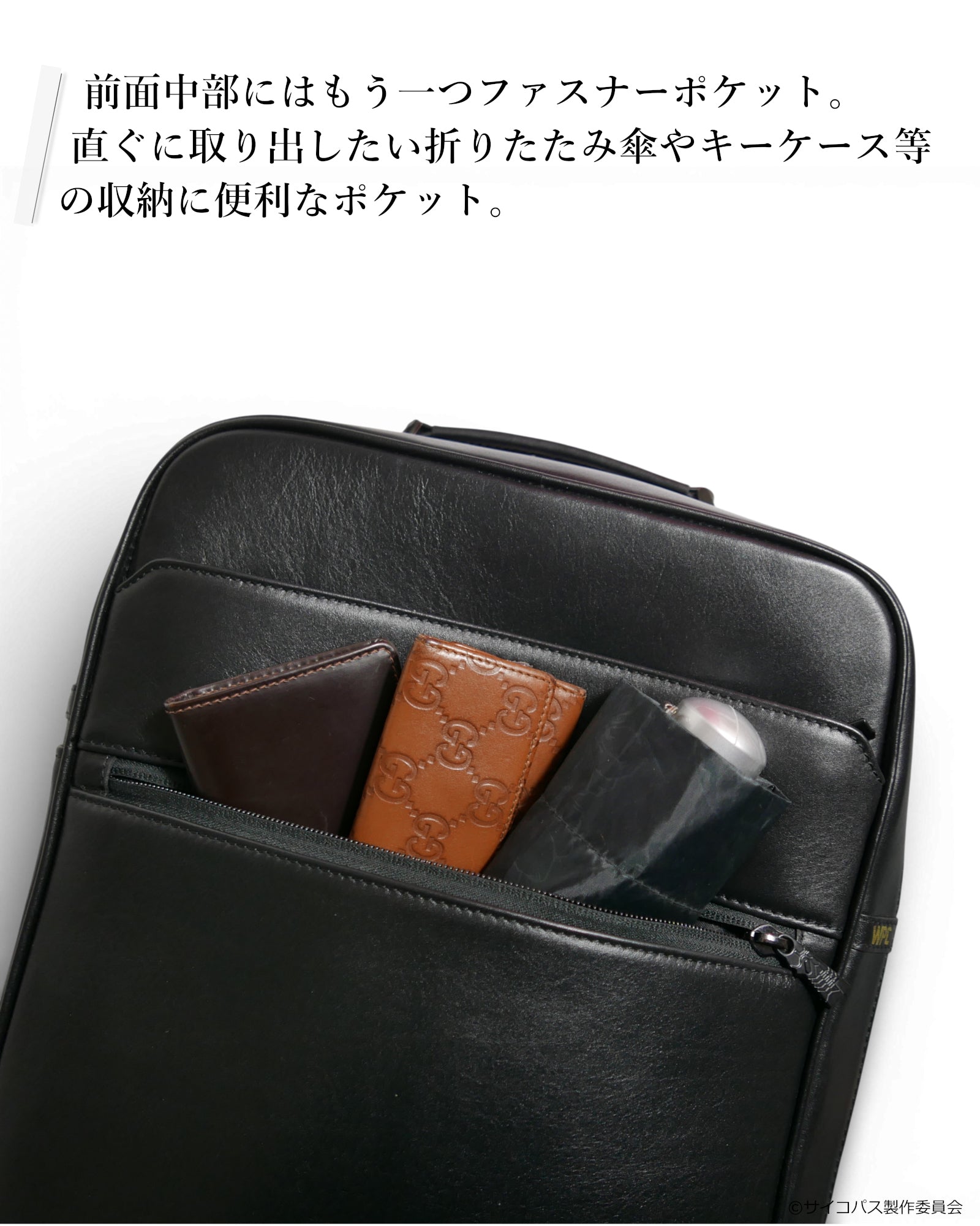 コラボ商品でありながら、ビジネスシーンにも日常のコーディネートにも馴染むよう、シンプルで上質なデザインに仕上げています。