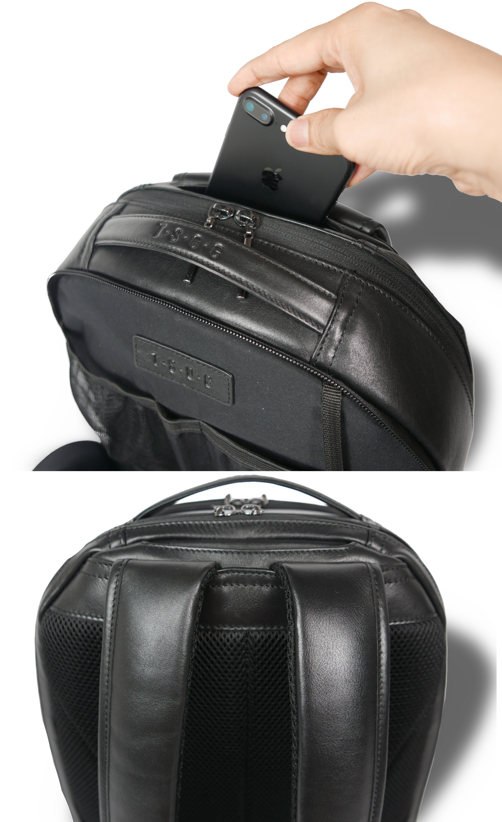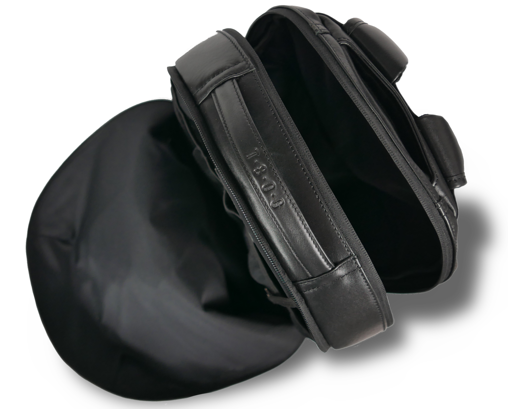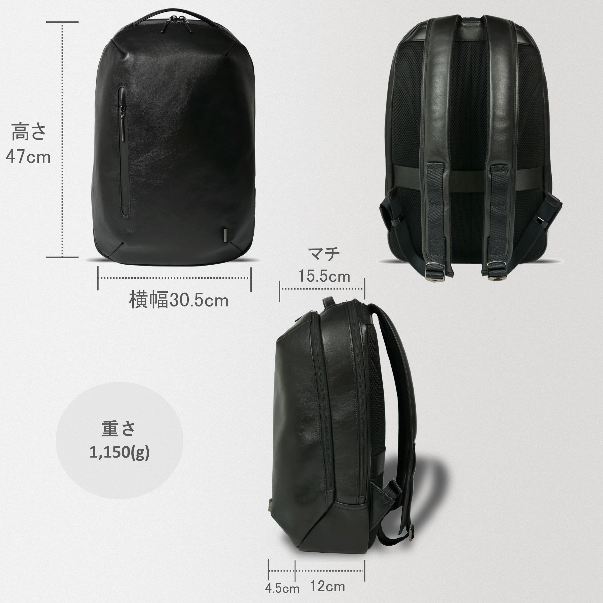 2つの大容量コンパートメントを備えた収納性と、美しく立体的なフォルムを両立させた防水本革リュックです。