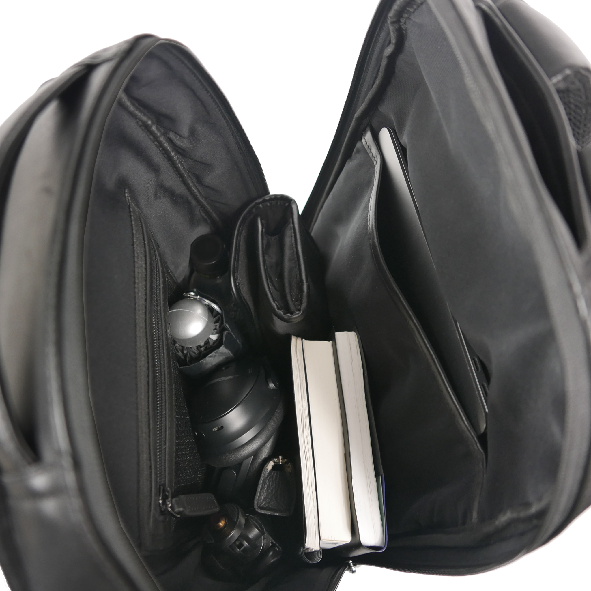 ”ガバっと”大きく開くメインコンパートメント。旅行や出張等の外泊時はもちろん、デイリーで持ち歩きたいものは全て余裕をもって収納可能です。