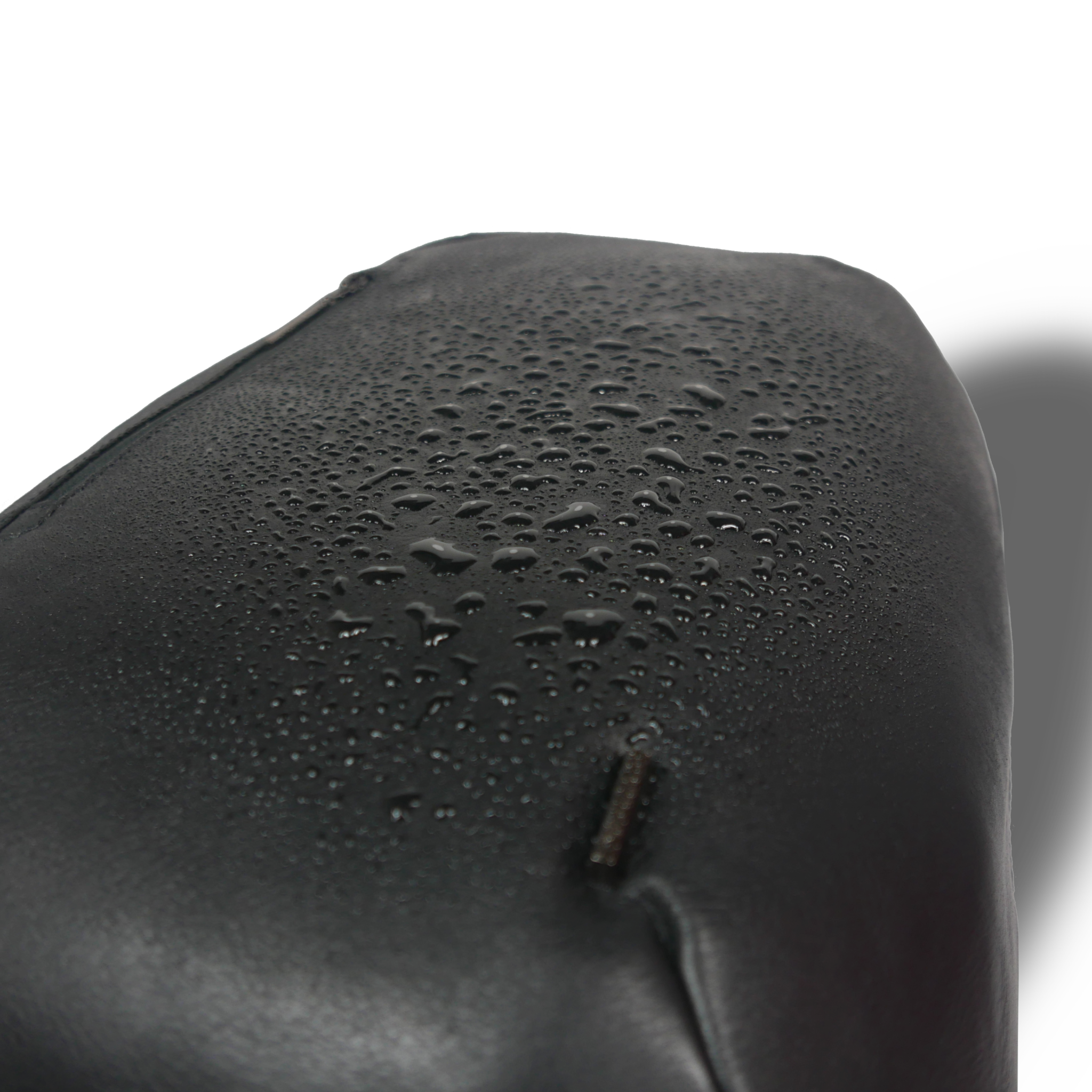 表面に撥水加工を施す処理ではなく、革をなめす段階から防水性のある溶剤を浸透させているため、持続性の高い防水を実現しています。