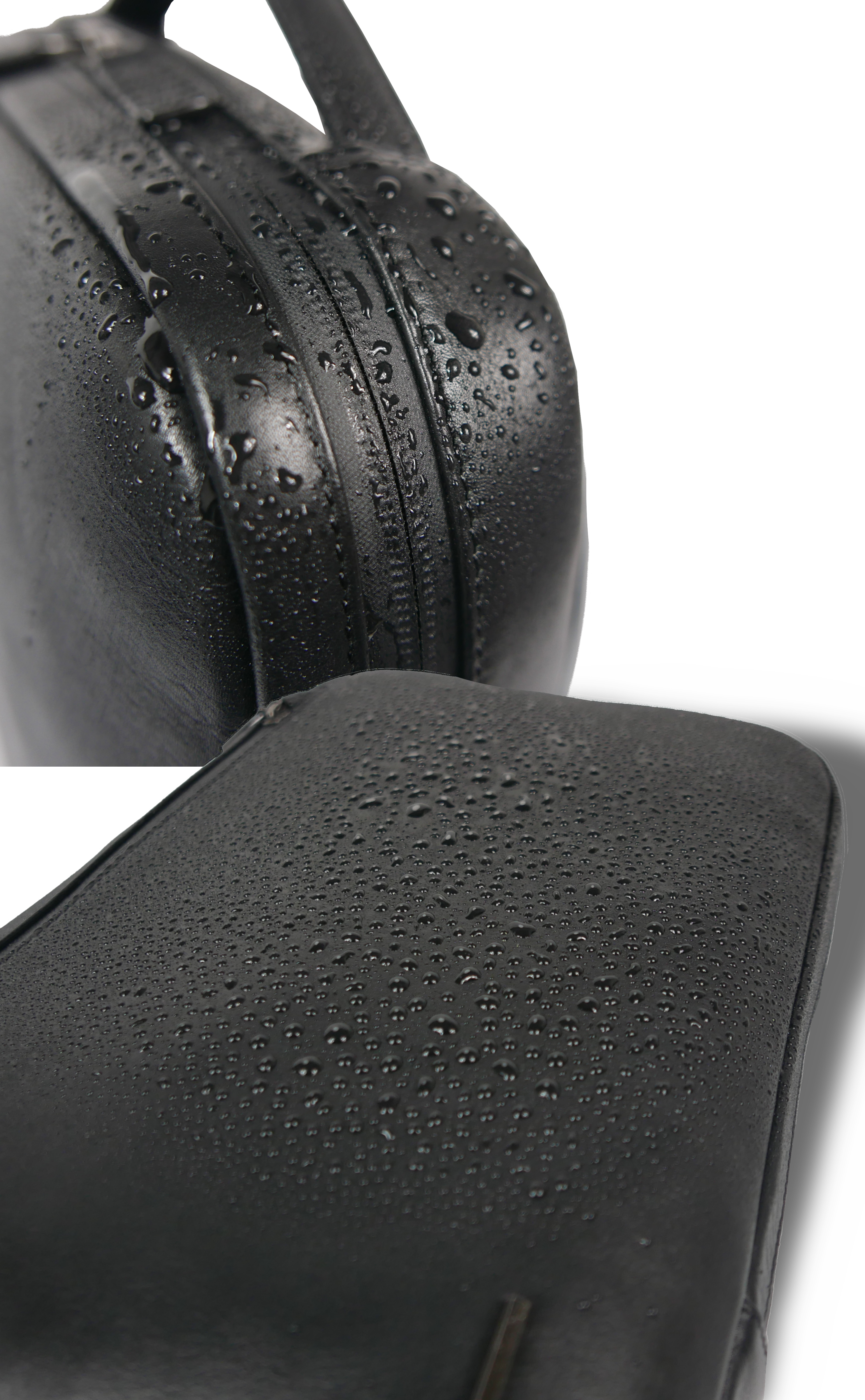 従来、本革は水に弱いものという常識がありますが、その弱点を補う『水を通さない』優れた技術を採用し、雨の日でも安心してお使い頂けます。
