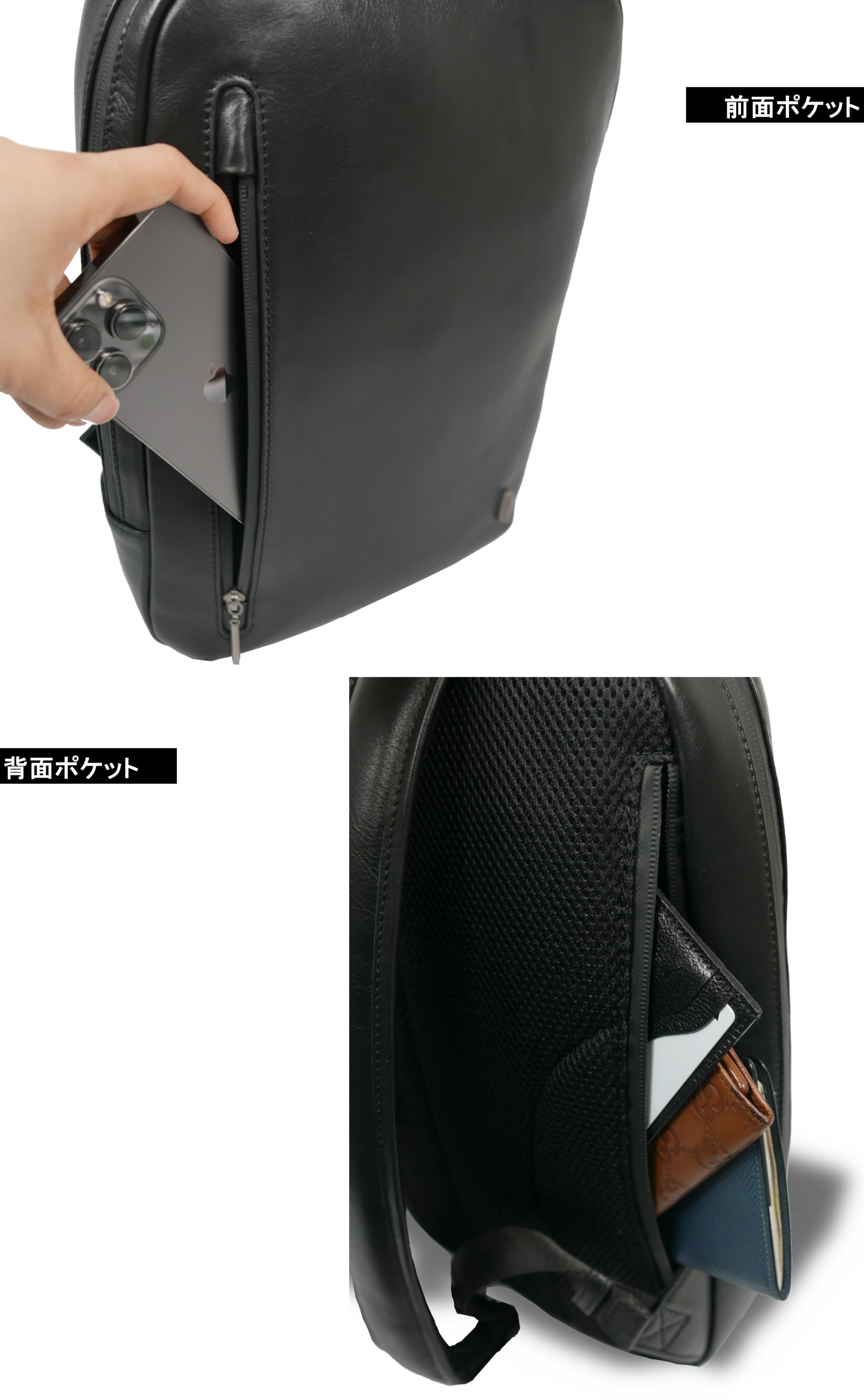 充実の前面・背面の両ポケットで、直ぐに取り出したい小物は全て収納可能