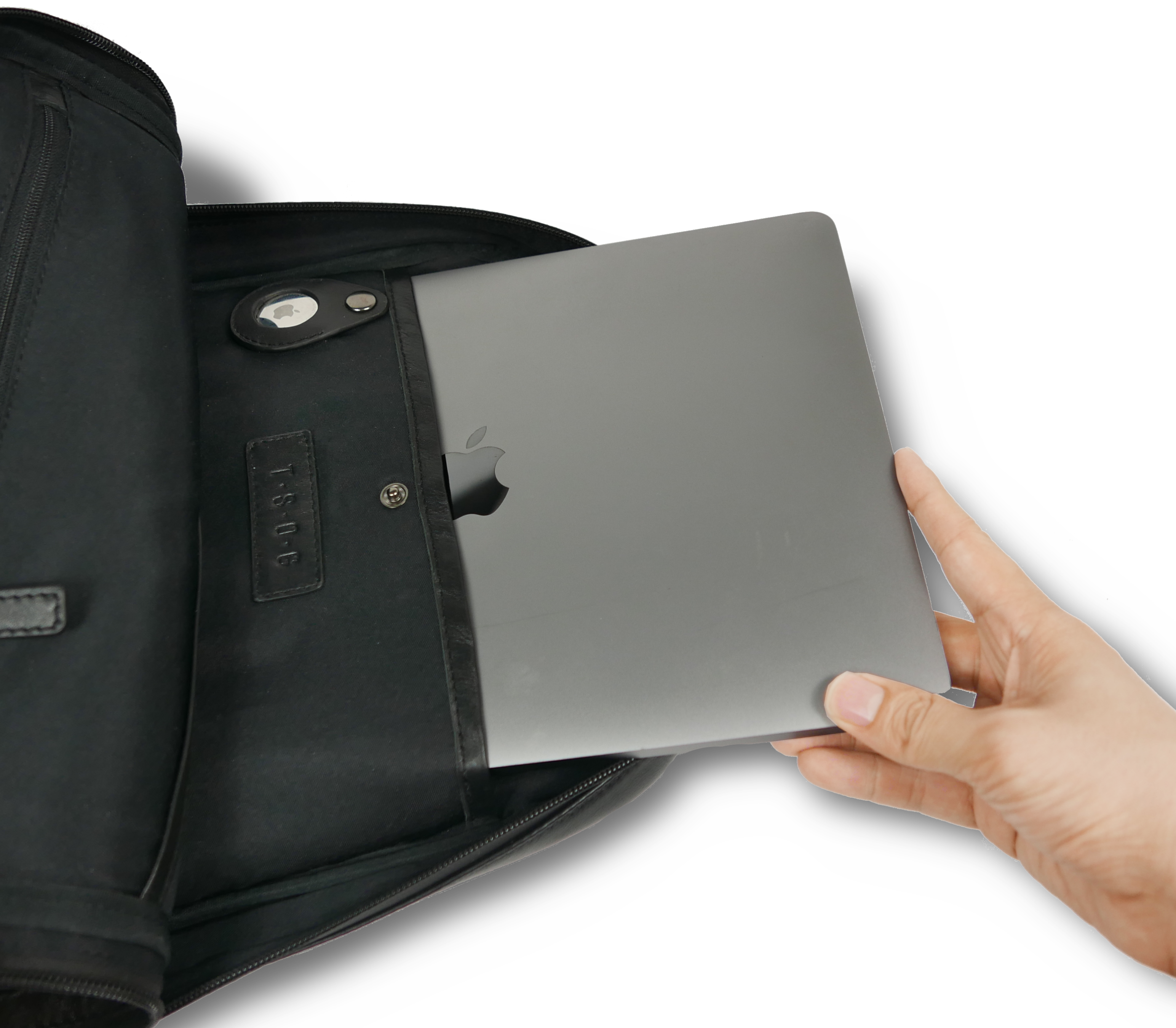 専用ポケットにAirTagを入れることで、万が一リュックを紛失した時にiPhoneと連携し、アプリ上で位置情報を確認することができます。