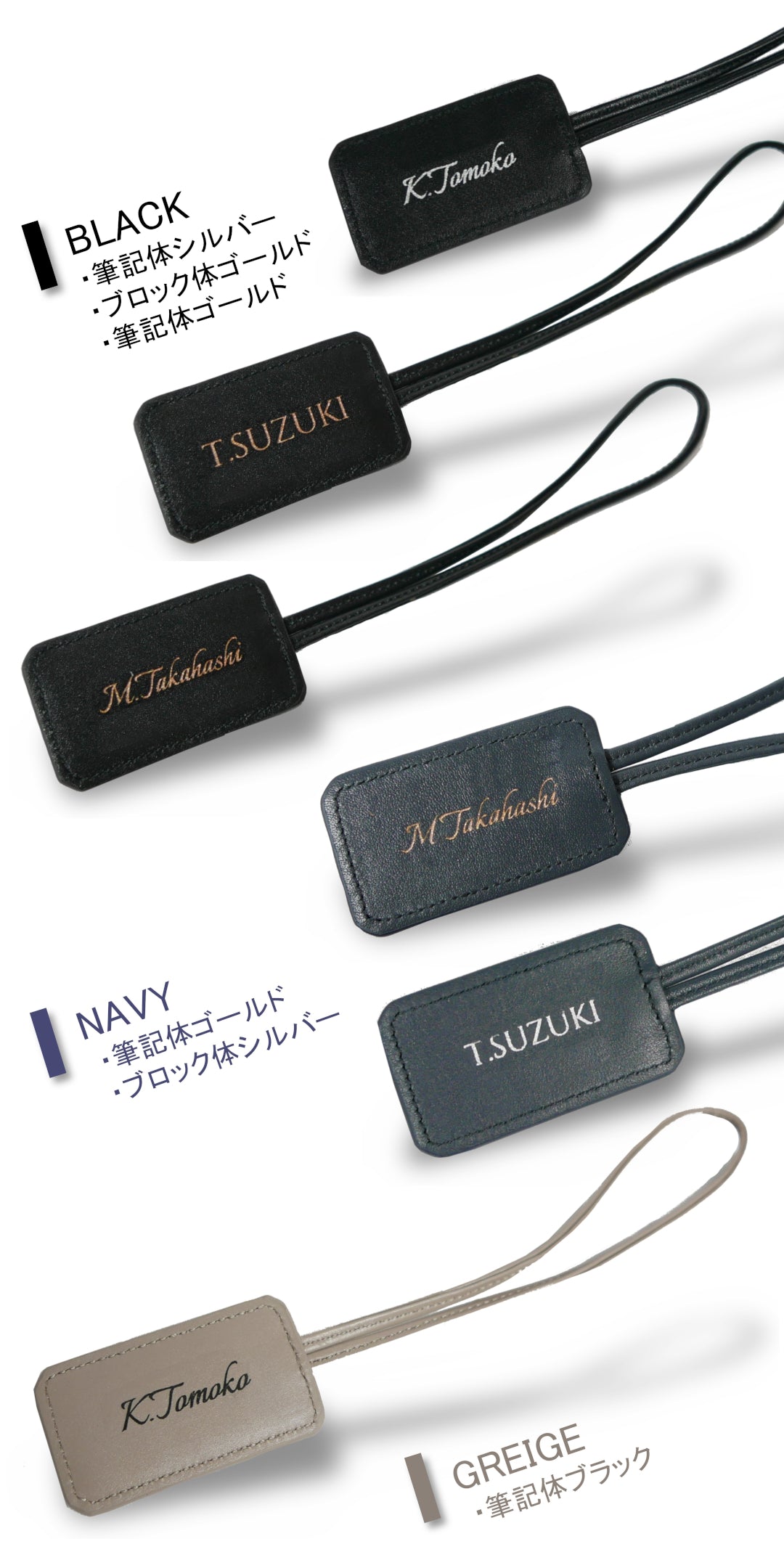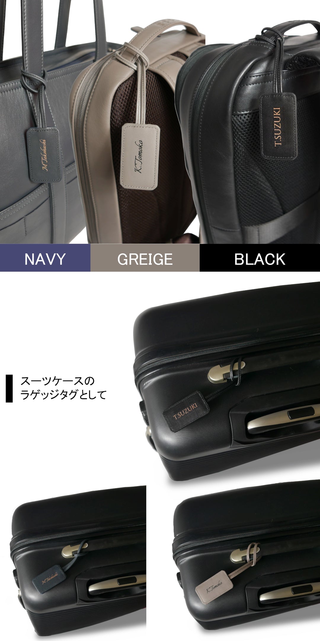 【新製品】レザータグ | ネームタグ 名前刻印 名入れ 本革 ギフト ブラック ネイビー グレージュ
