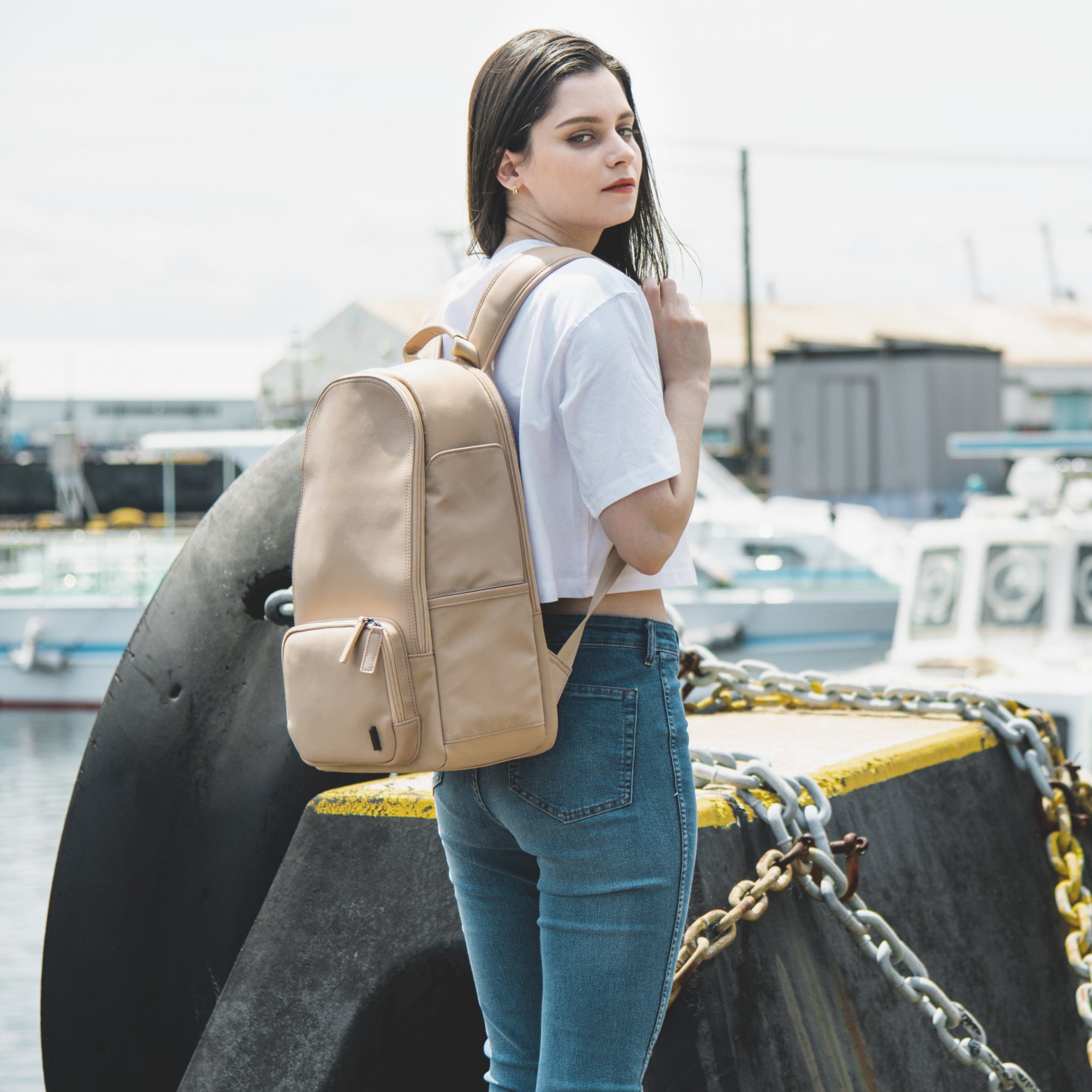 TAN《タン》ベージュピンクシティリュック | A4 対応 13.3インチPC対応 15L 縦42cm 撥水レザー ナイロン 二重構造 ユニセックス
